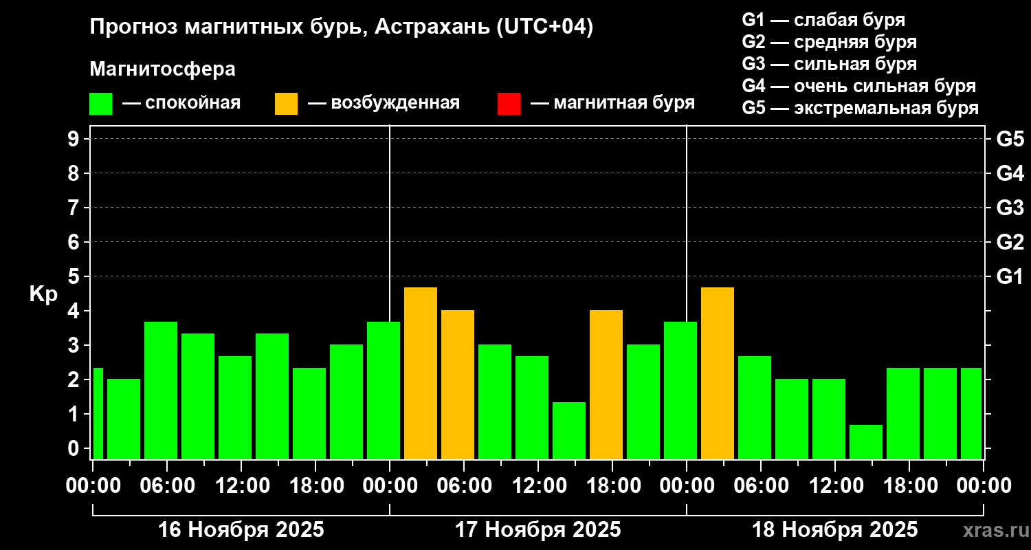 Прогноз магнитных бурь Астрахани — 16 ноября 2025 года