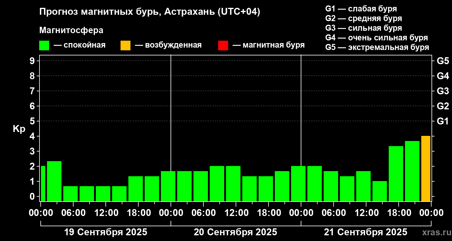 Прогноз магнитных бурь Астрахани — 19 сентября 2025 года
