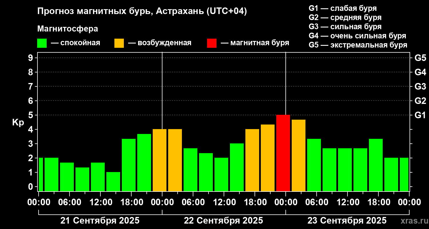 Прогноз магнитных бурь Астрахани на 21 сентября 2025 года