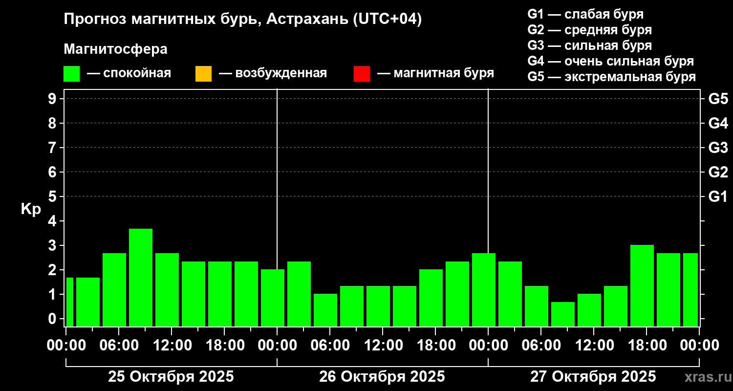 Прогноз магнитных бурь Астрахани — 25 октября 2025 года