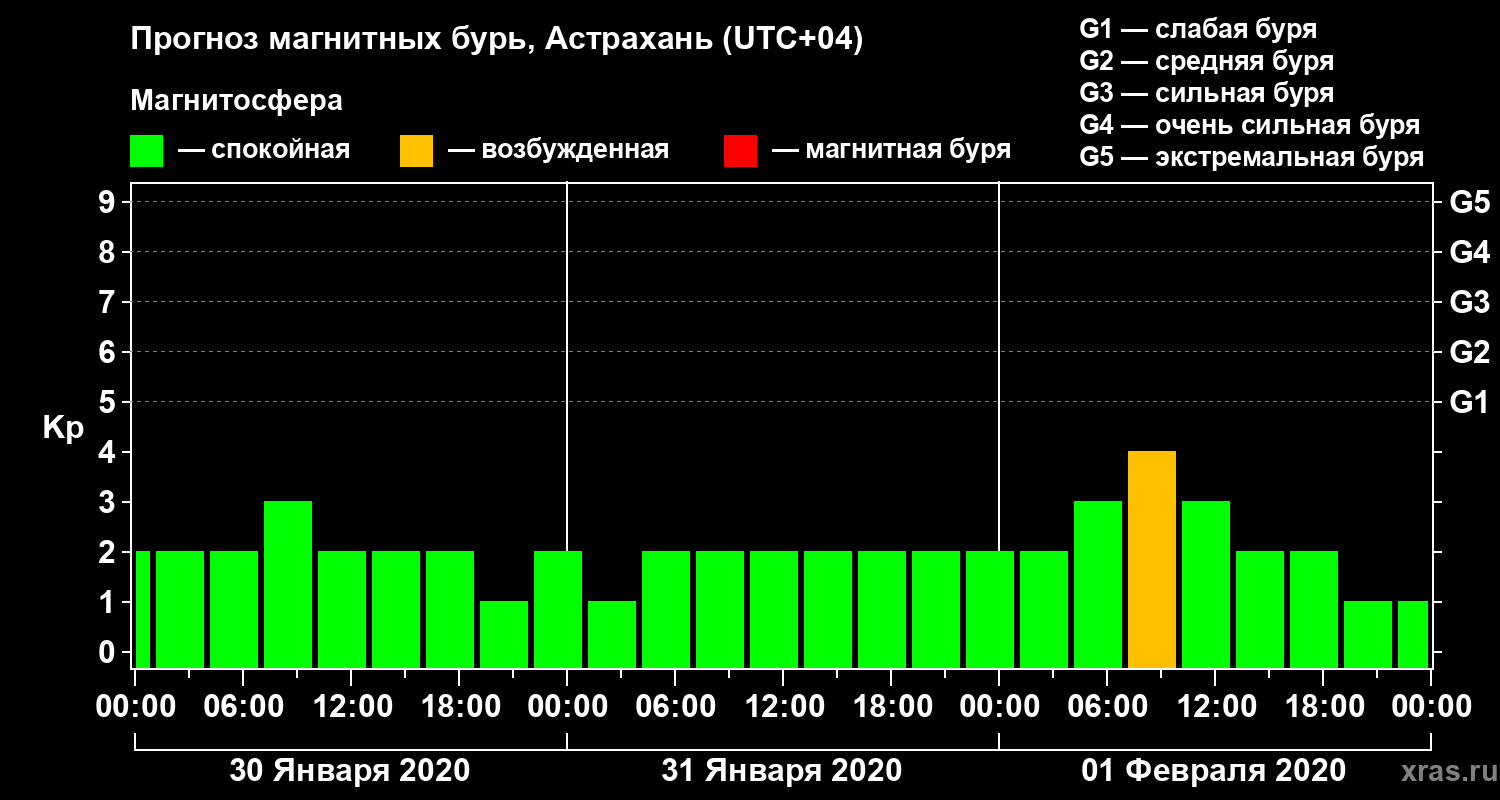 Прогноз магнитных бурь Астрахани — 30 января 2020 года