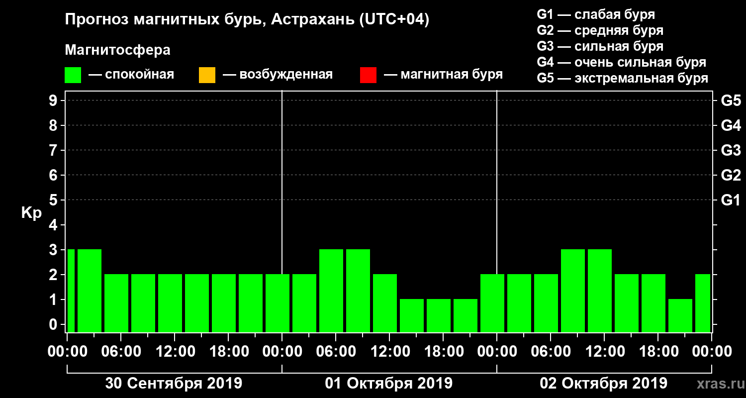 Прогноз магнитных бурь Астрахани — 30 сентября 2019 года