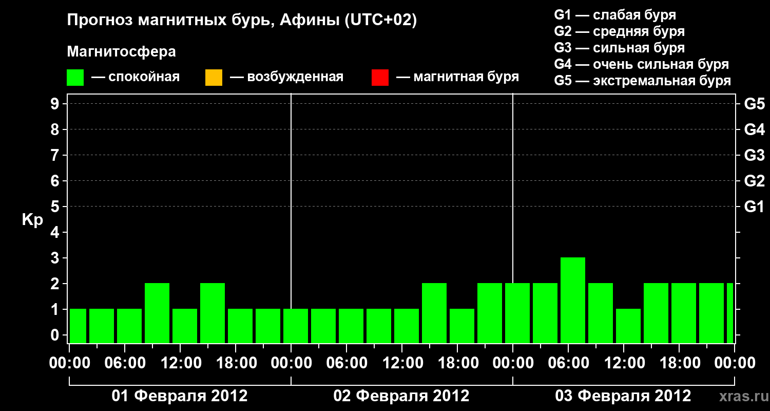Прогноз магнитных бурь Афинах — 1 февраля 2012 года