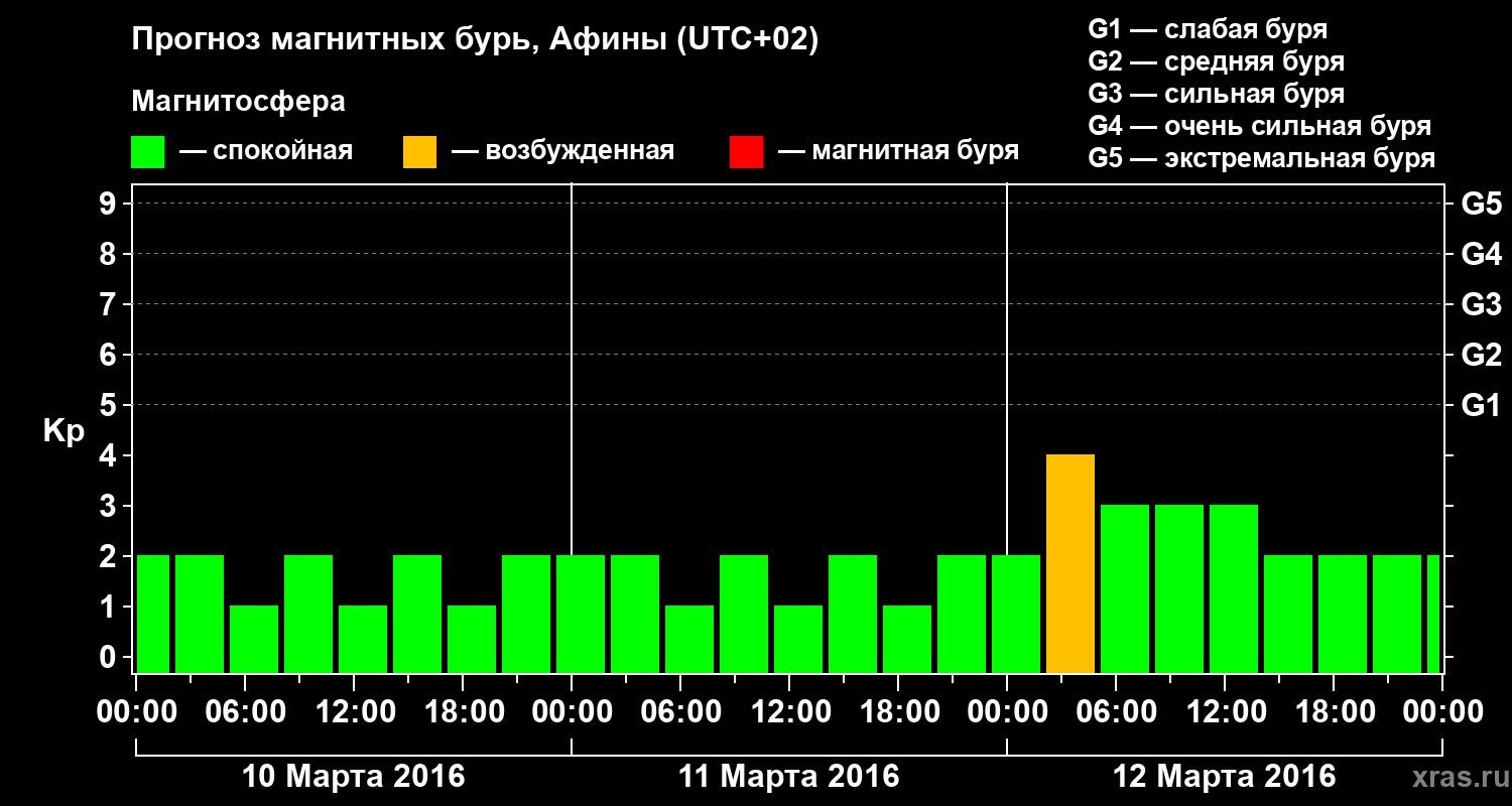 Прогноз магнитных бурь Афинах — 10 марта 2016 года