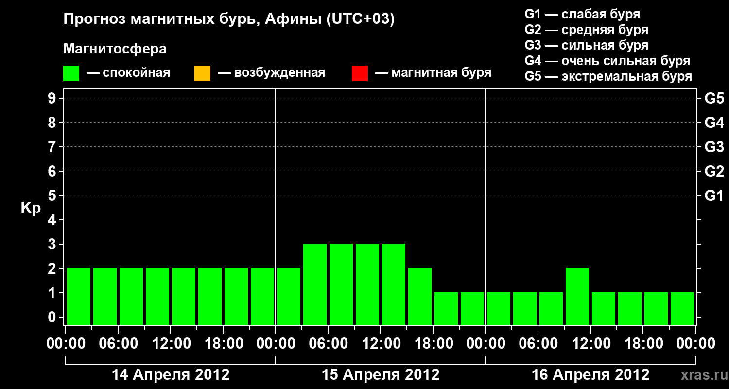 Прогноз магнитных бурь Афинах — 14 апреля 2012 года