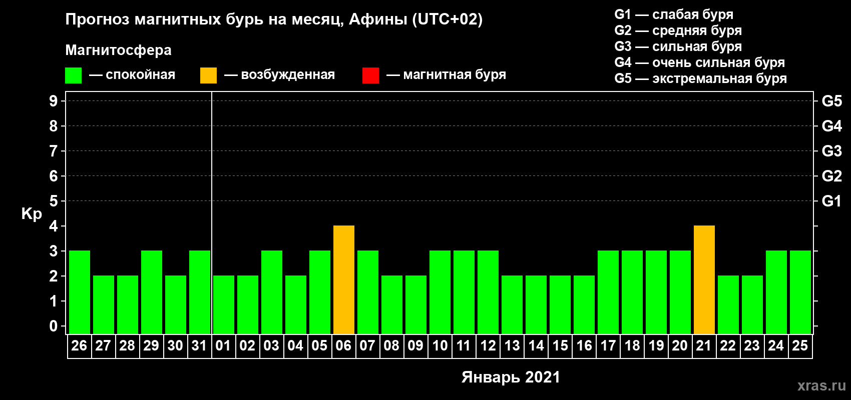 Прогноз магнитных бурь Афинах — 26 декабря 2020 года