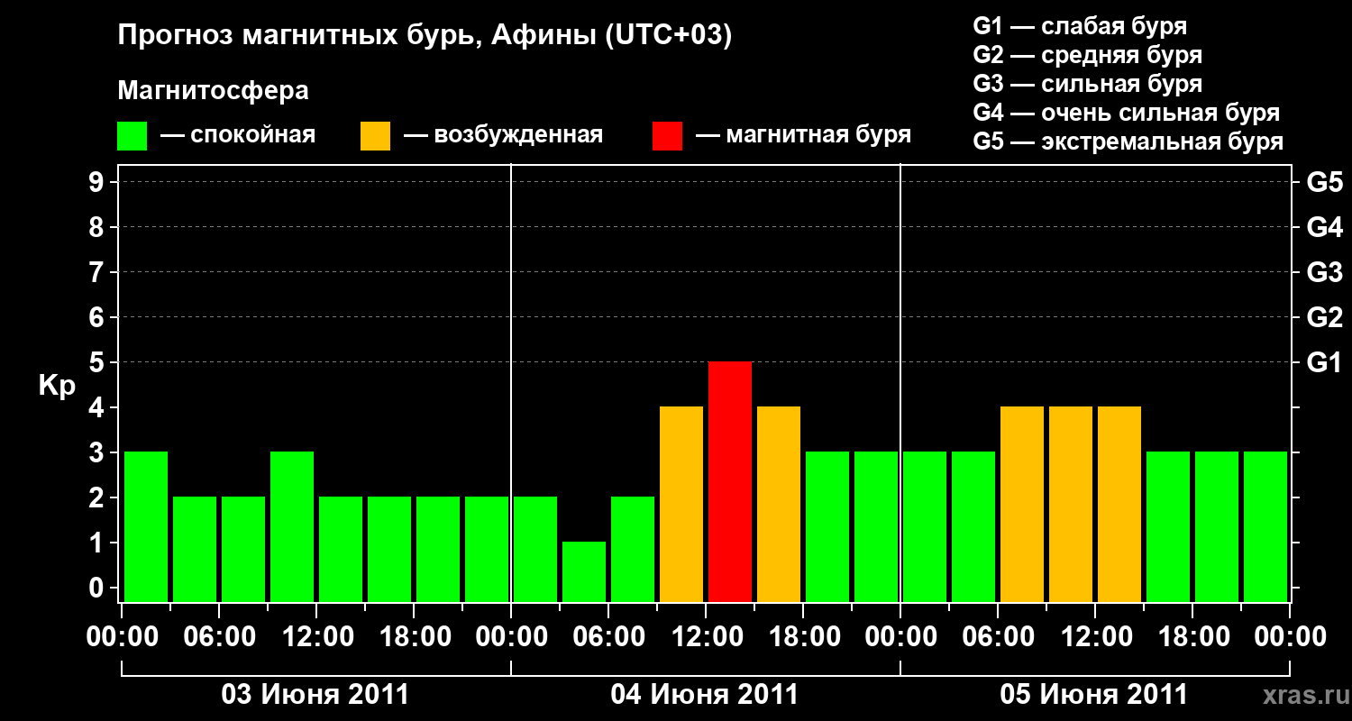 Прогноз магнитных бурь Афинах — 3 июня 2011 года