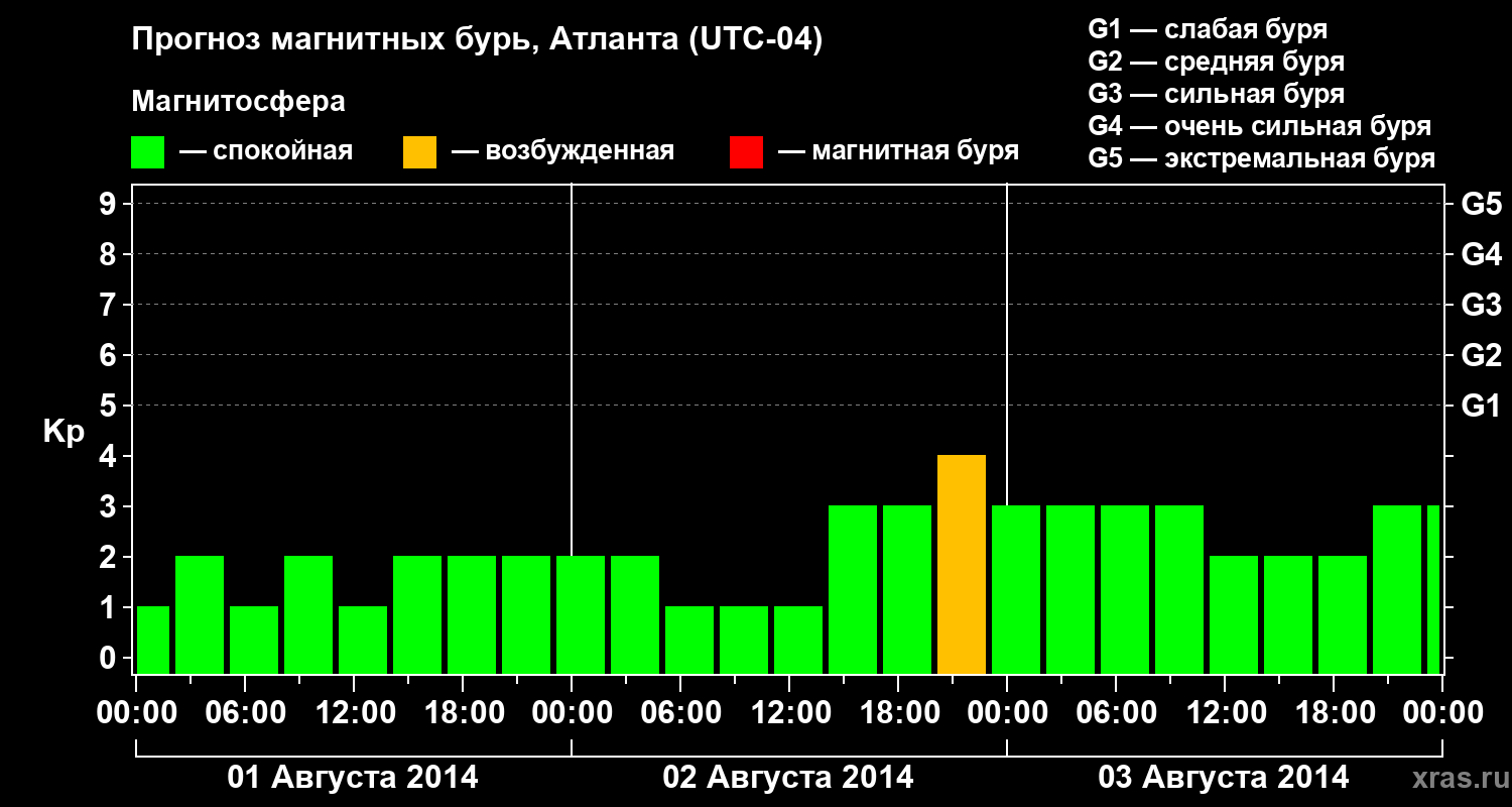 Прогноз магнитных бурь в Атланте на 1 августа 2014 года