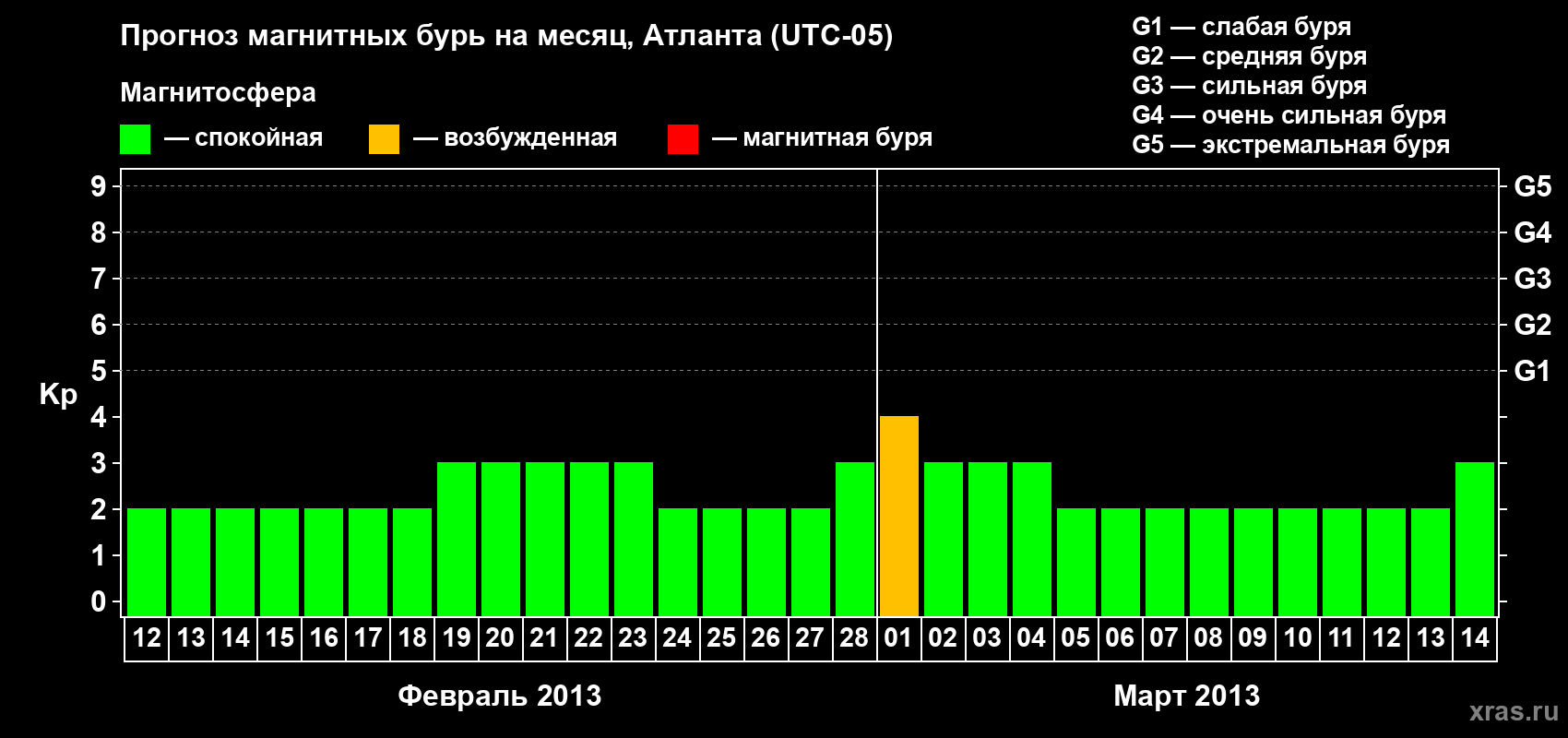 Прогноз магнитных бурь в Атланте — 12 февраля 2013 года