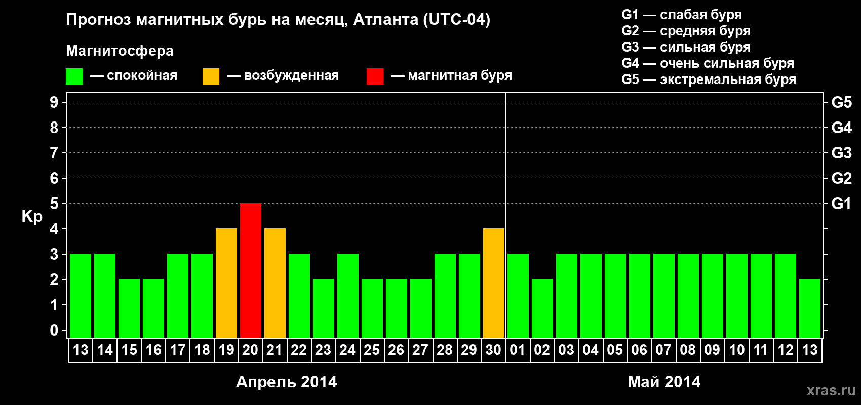 Прогноз магнитных бурь в Атланте — 13 апреля 2014 года