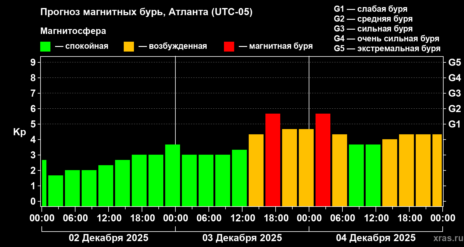 Прогноз магнитных бурь в Атланте — 2 декабря 2025 года