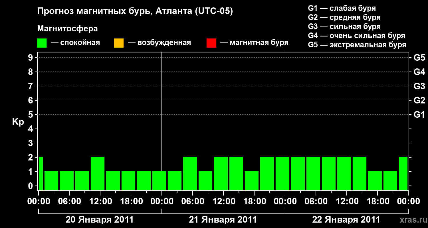 Прогноз магнитных бурь в Атланте — 20 января 2011 года