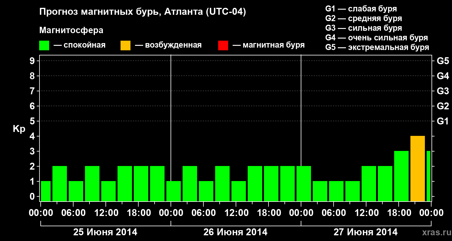 Прогноз магнитных бурь в Атланте — 25 июня 2014 года
