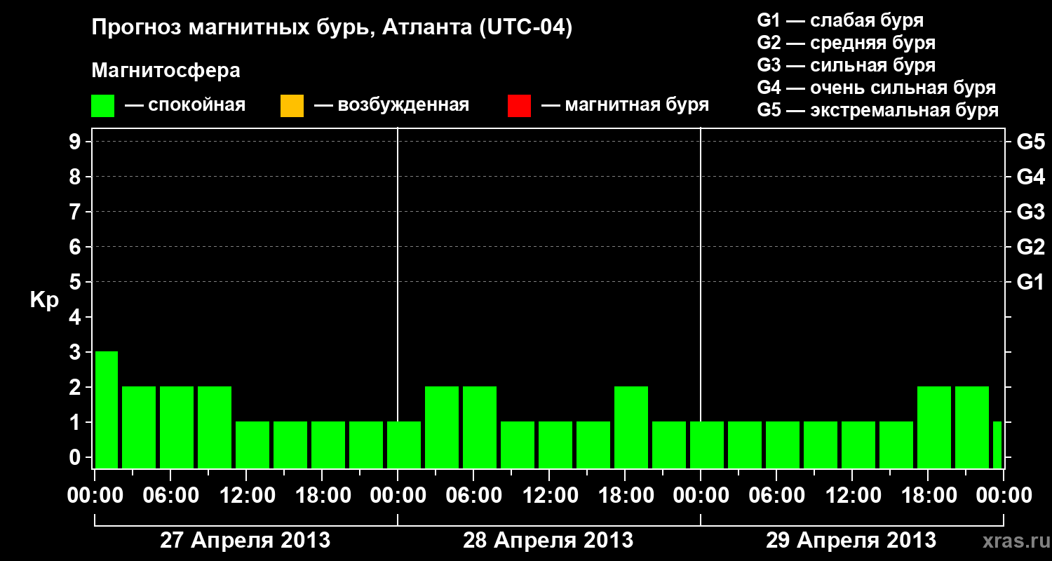 Прогноз магнитных бурь в Атланте на 27 апреля 2013 года