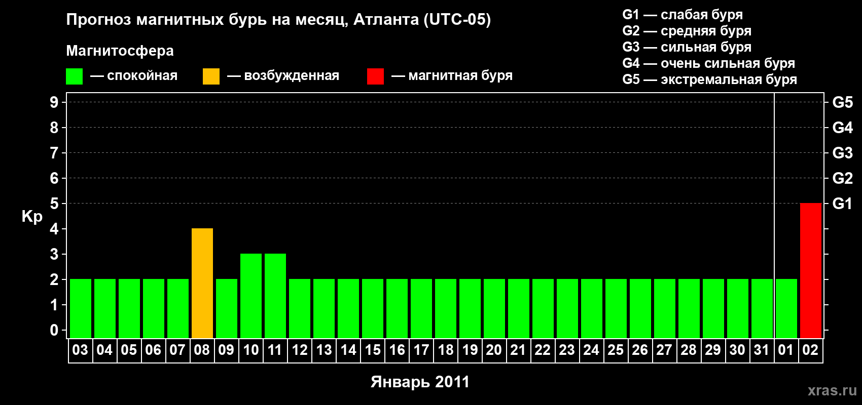 Прогноз магнитных бурь в Атланте — 3 января 2011 года