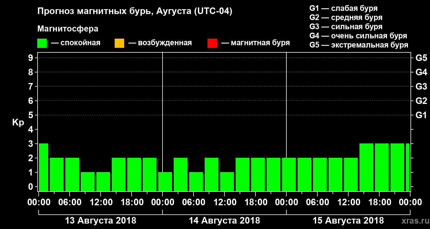 Прогноз магнитных бурь в Аугусте на 13 августа 2018 года