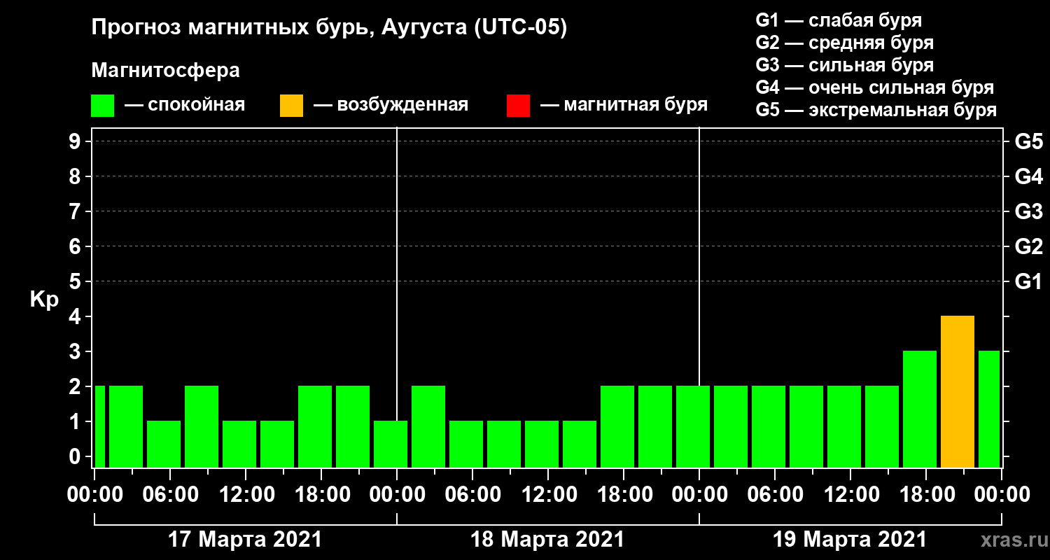 Прогноз магнитных бурь в Аугусте — 17 марта 2021 года