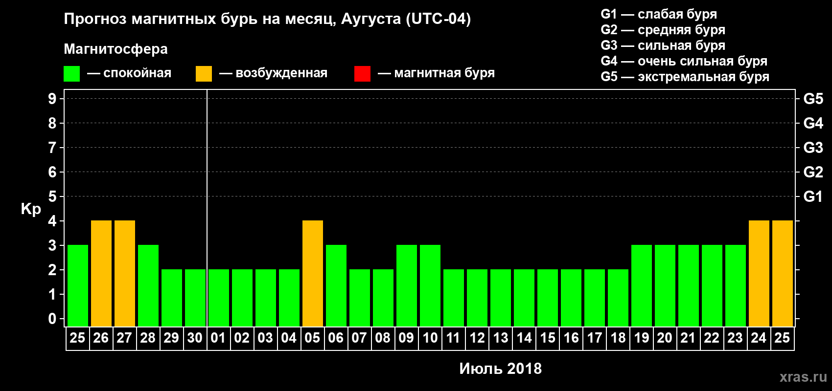 Прогноз магнитных бурь в Аугусте — 25 июня 2018 года