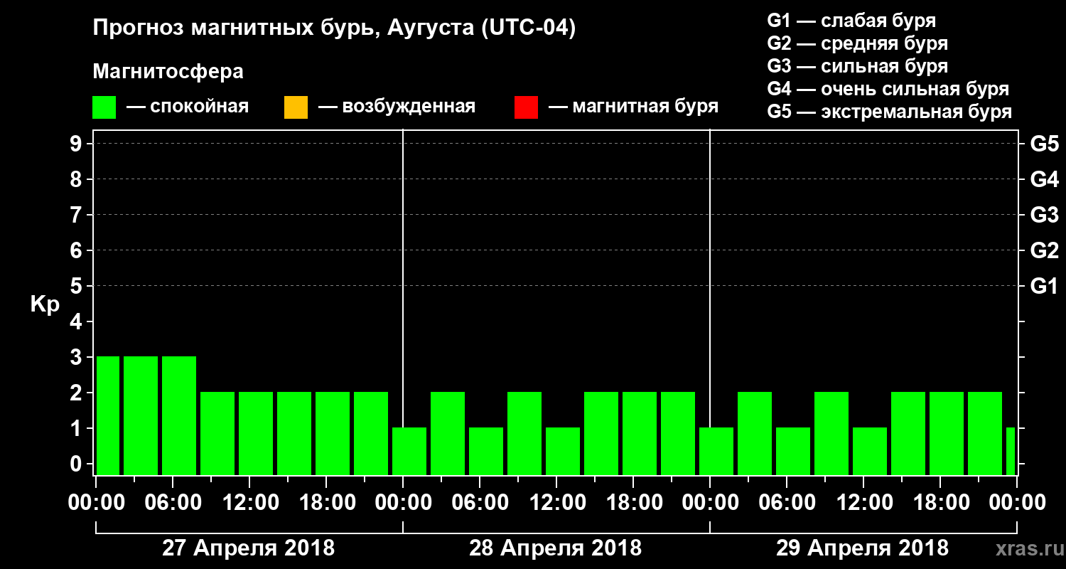 Прогноз магнитных бурь в Аугусте на 27 апреля 2018 года