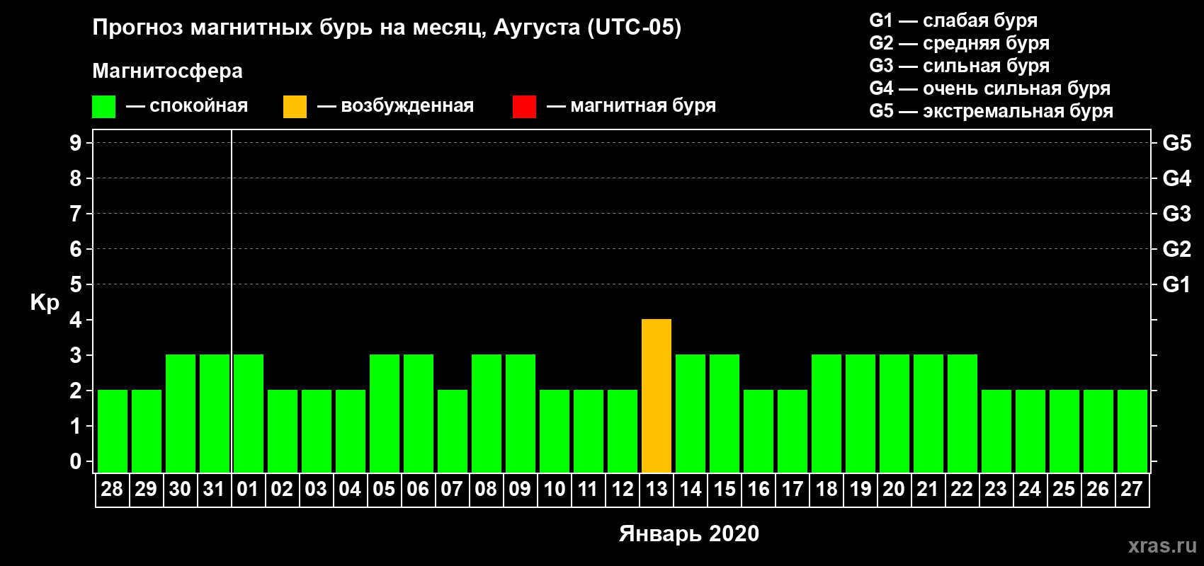Прогноз магнитных бурь в Аугусте — 28 декабря 2019 года