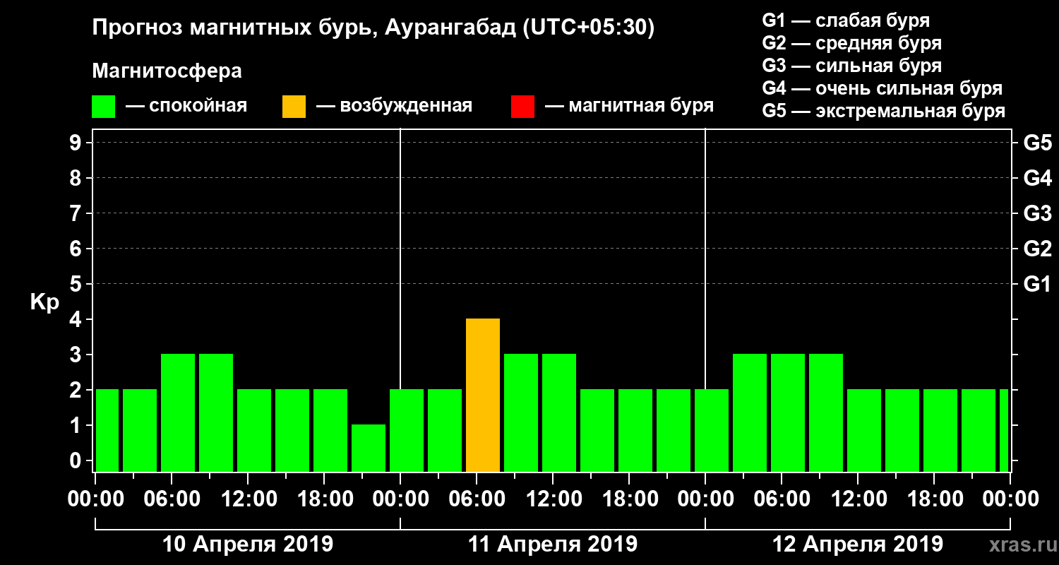 Прогноз магнитных бурь в Аурангабаде — 10 апреля 2019 года