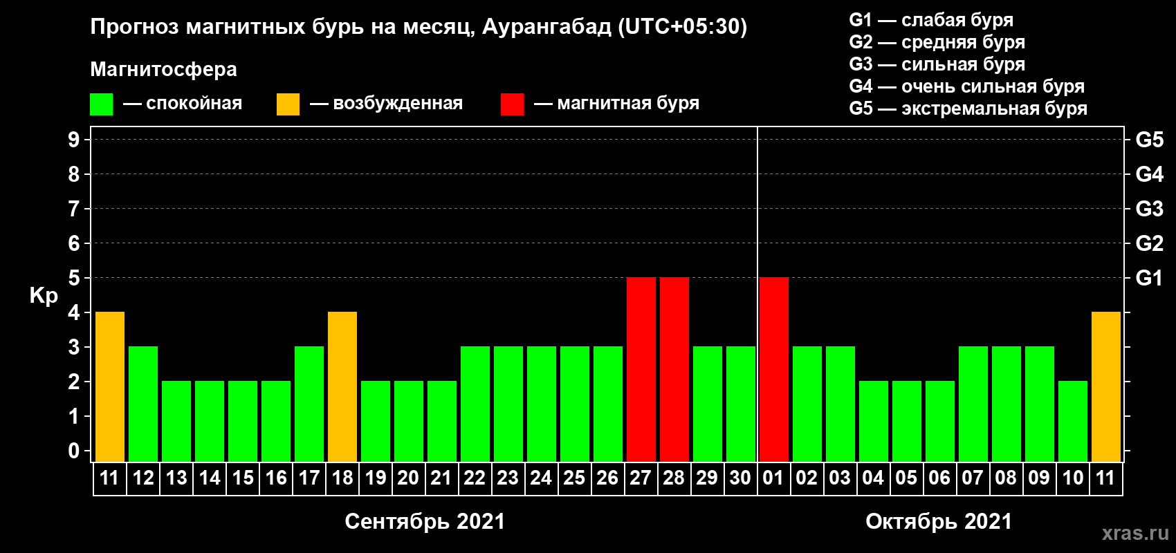 Прогноз магнитных бурь в Аурангабаде — 11 сентября 2021 года