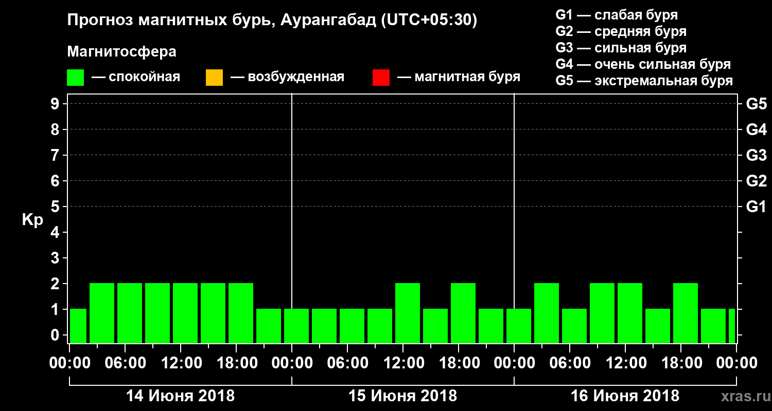 Прогноз магнитных бурь в Аурангабаде — 14 июня 2018 года
