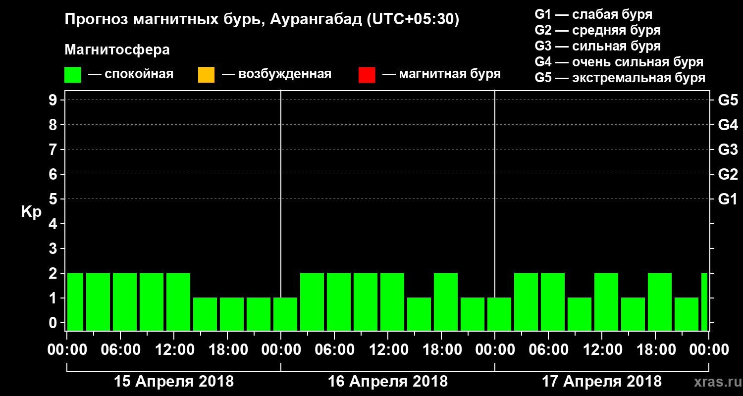 Прогноз магнитных бурь в Аурангабаде — 15 апреля 2018 года