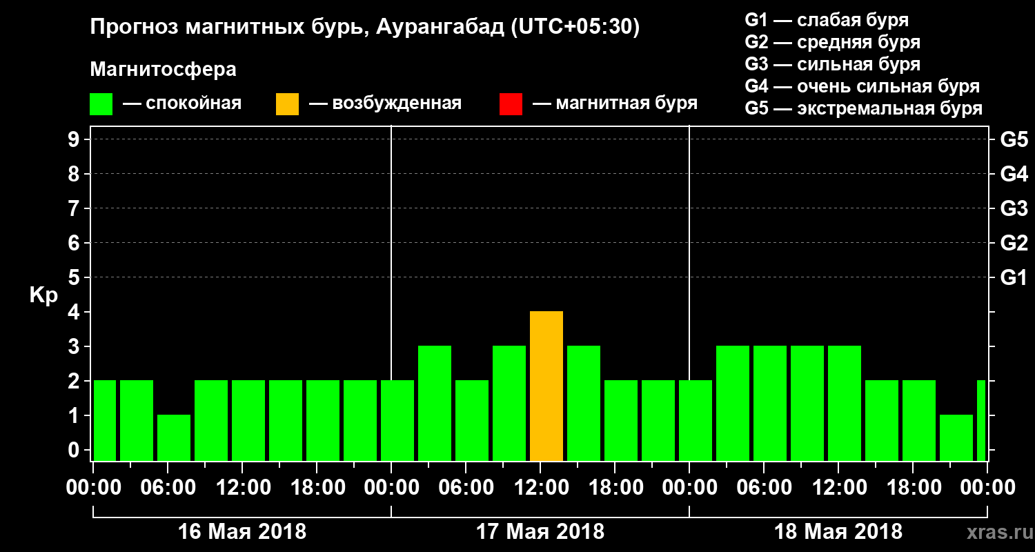 Прогноз магнитных бурь в Аурангабаде — 16 мая 2018 года