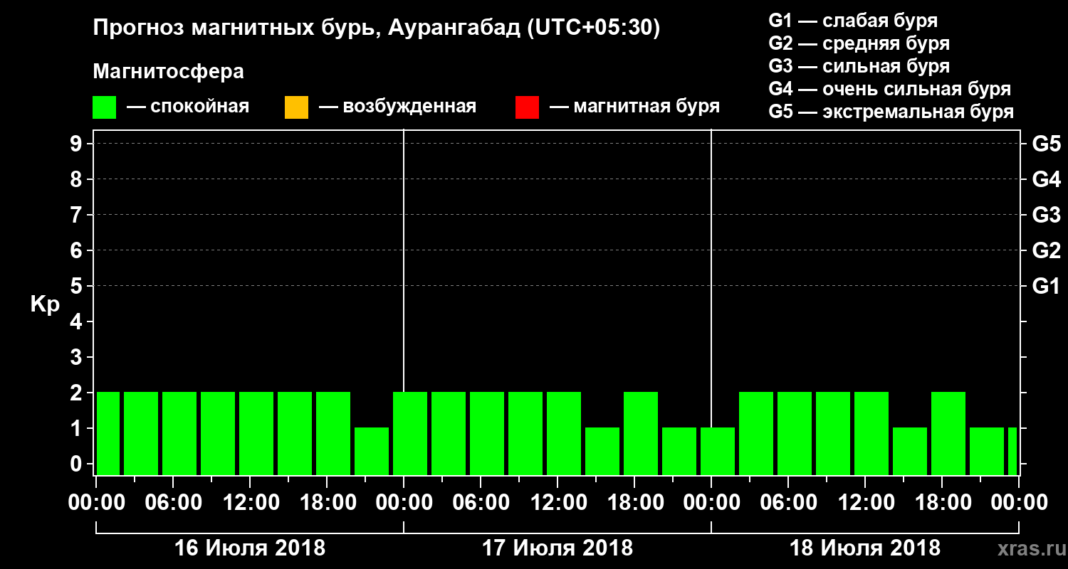Прогноз магнитных бурь в Аурангабаде — 16 июля 2018 года