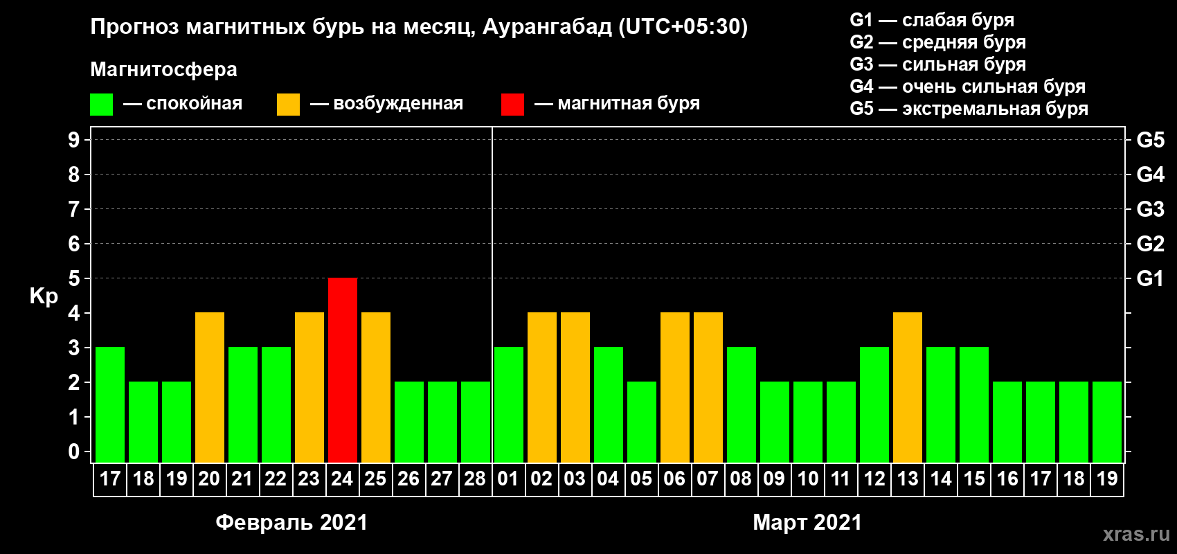 Прогноз магнитных бурь в Аурангабаде — 17 февраля 2021 года