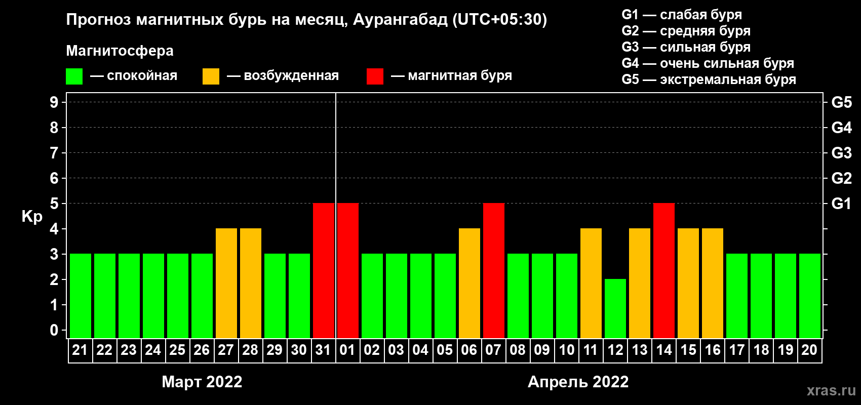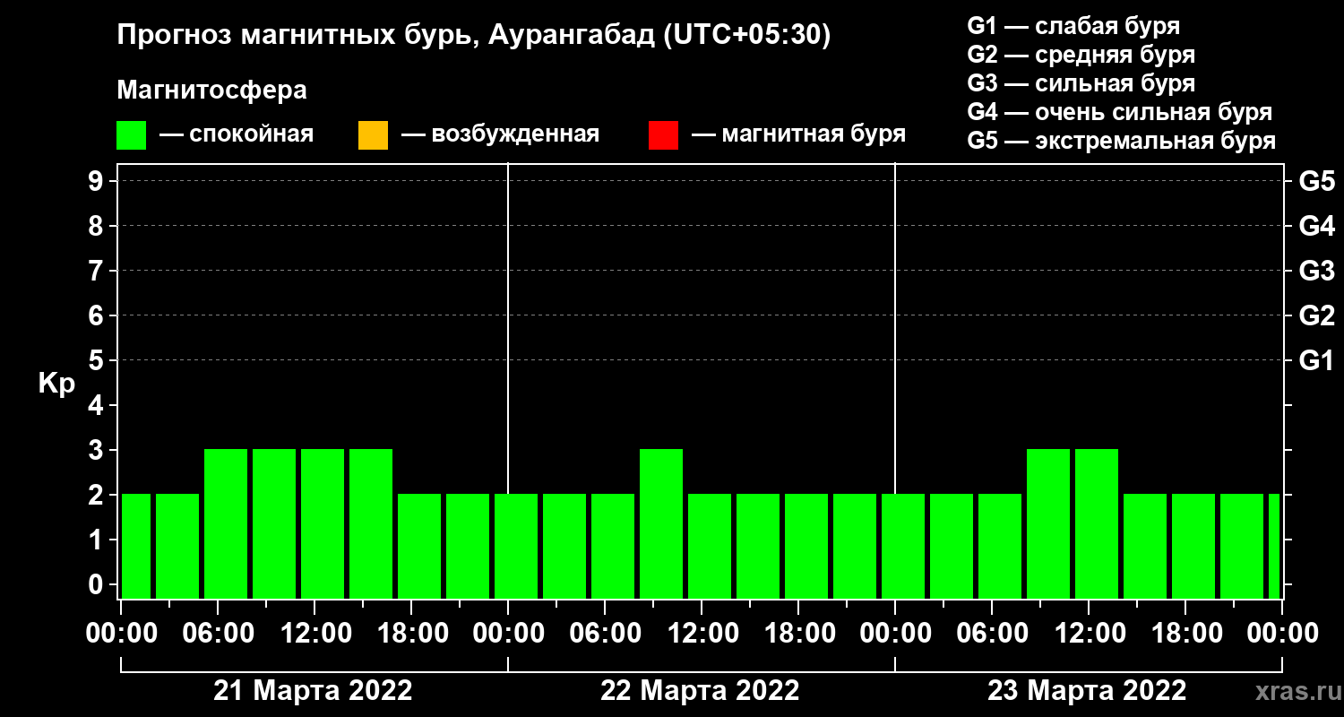 Прогноз магнитных бурь в Аурангабаде — 21 марта 2022 года
