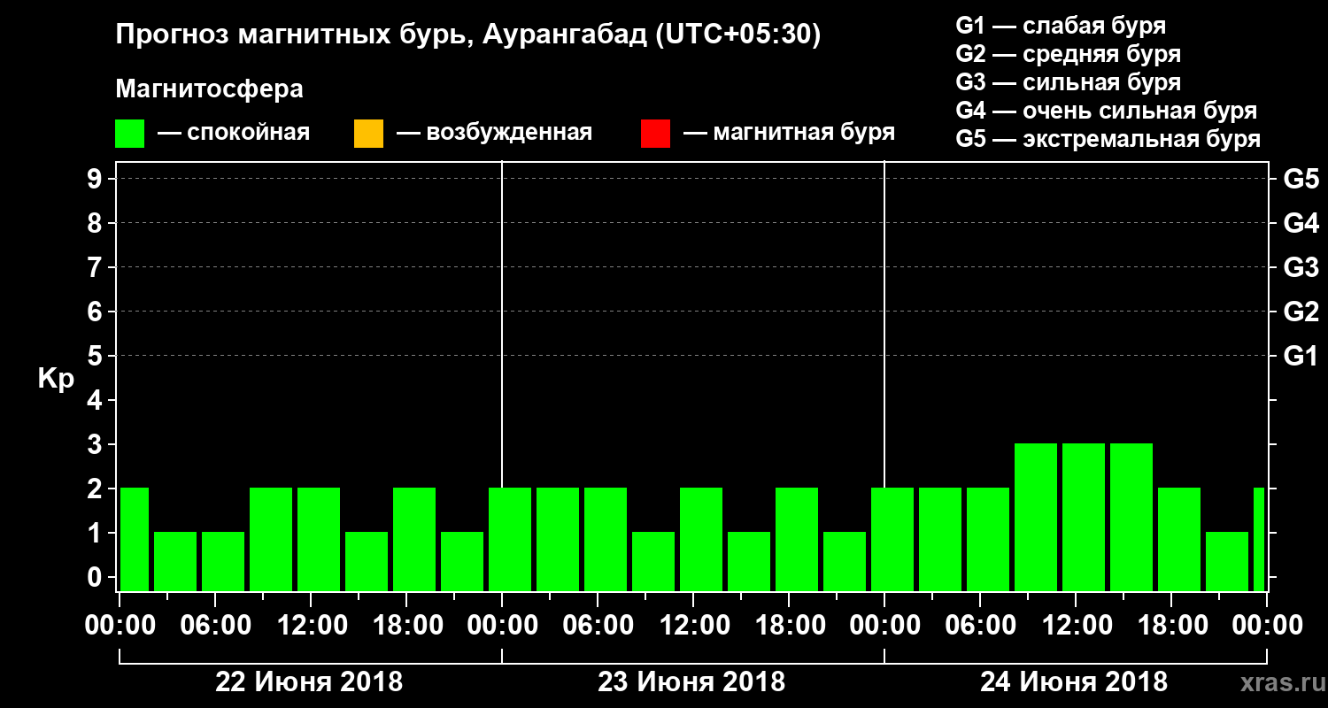 Прогноз магнитных бурь в Аурангабаде — 22 июня 2018 года