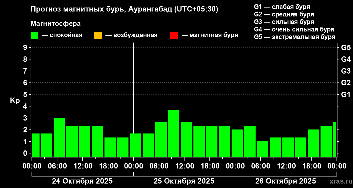 Прогноз магнитных бурь в Аурангабаде — 24 октября 2025 года