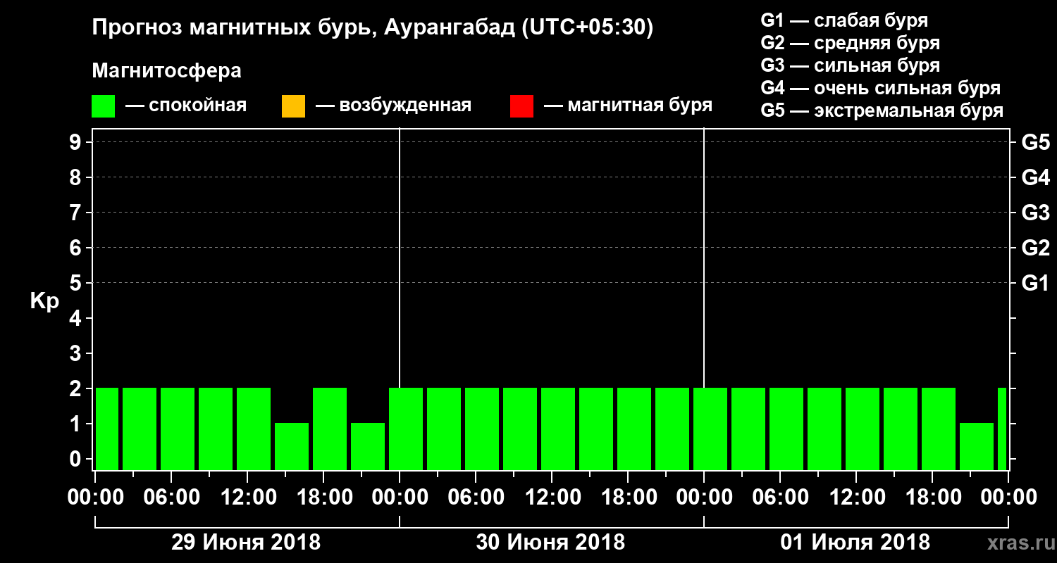 Прогноз магнитных бурь в Аурангабаде — 29 июня 2018 года
