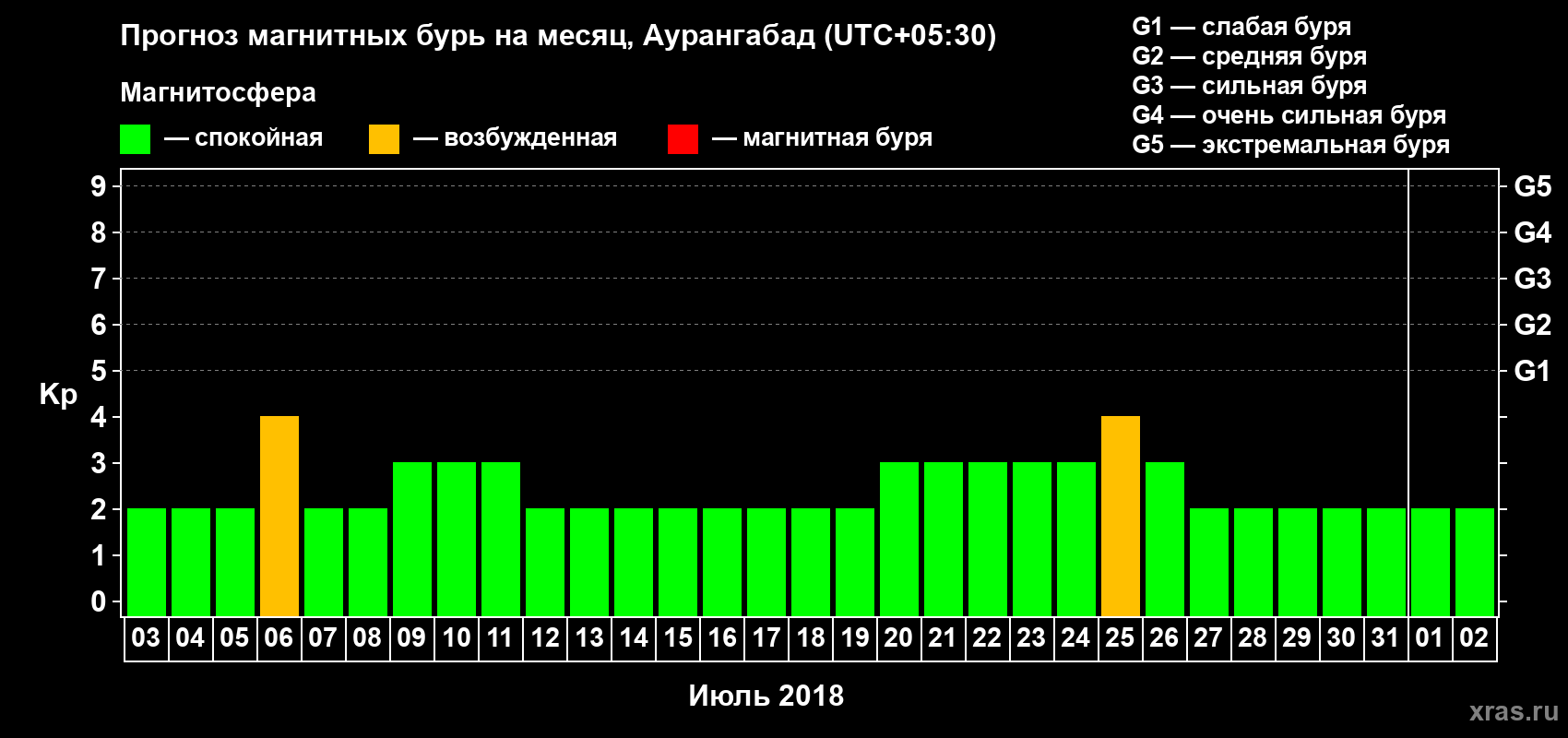 Прогноз магнитных бурь в Аурангабаде — 3 июля 2018 года