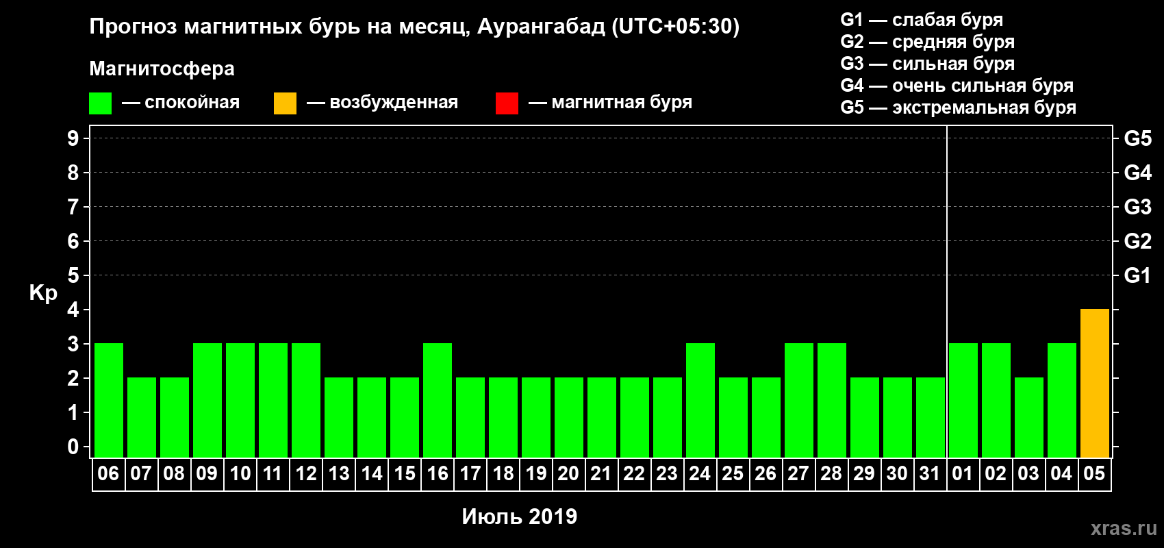 Прогноз магнитных бурь в Аурангабаде — 6 июля 2019 года