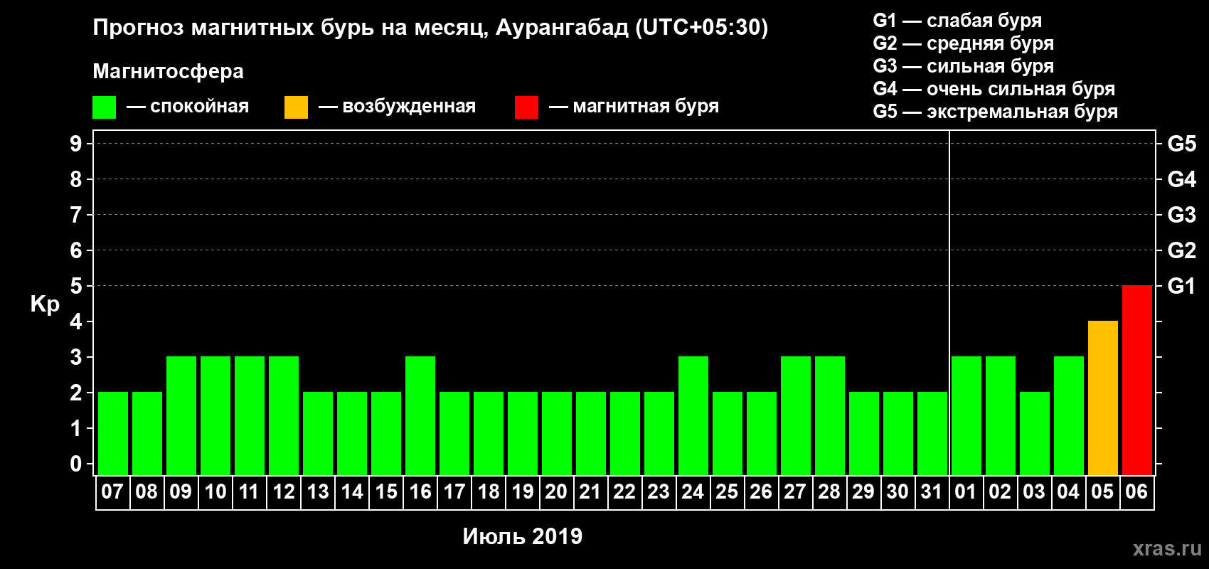 Прогноз магнитных бурь в Аурангабаде — 7 июля 2019 года