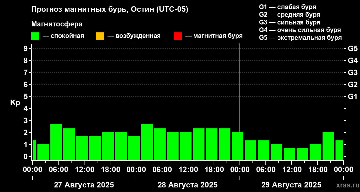 Прогноз магнитных бурь в Остине на 27 августа 2025 года