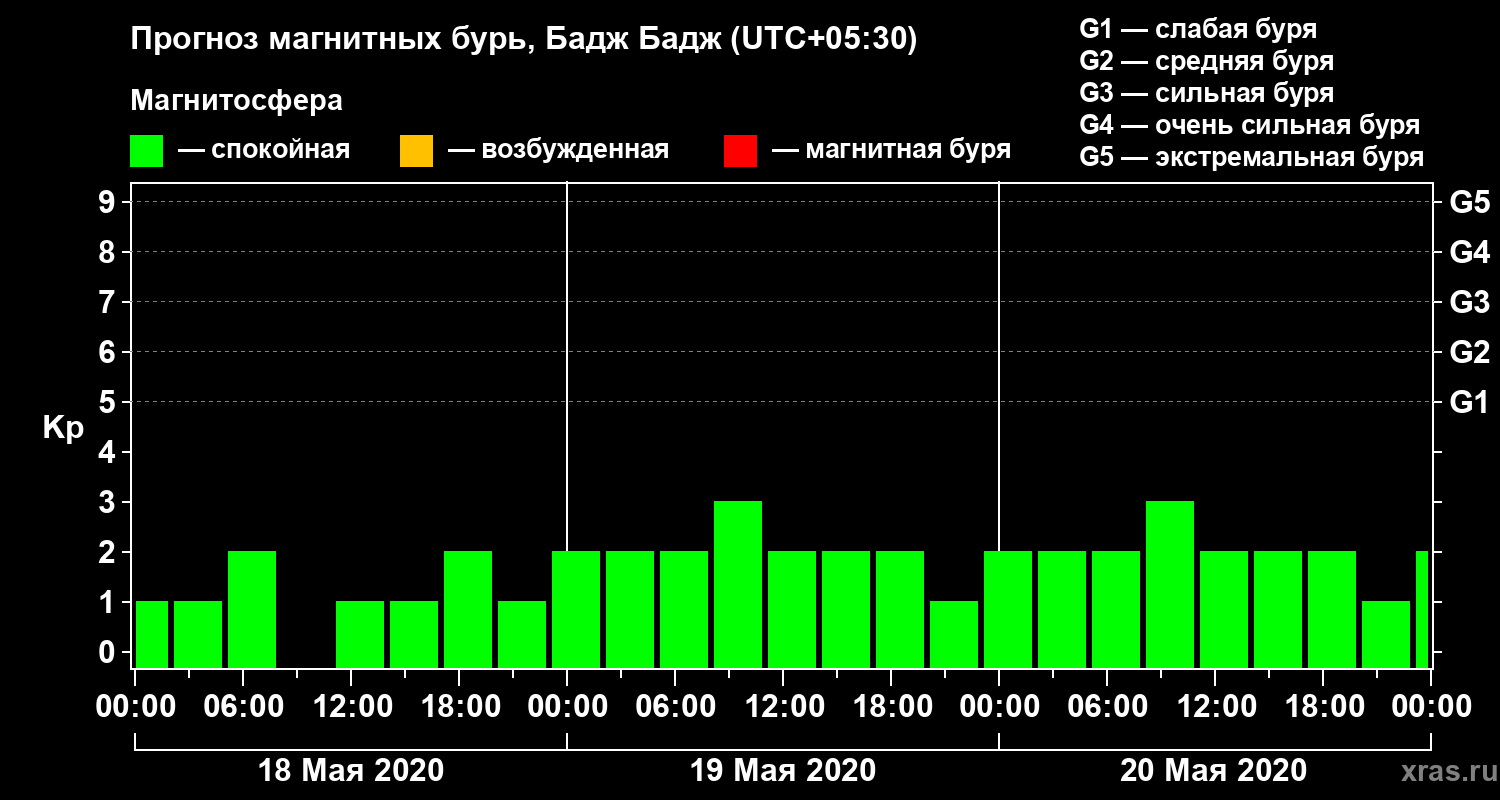 Прогноз магнитных бурь в Бадж Бадже — 18 мая 2020 года