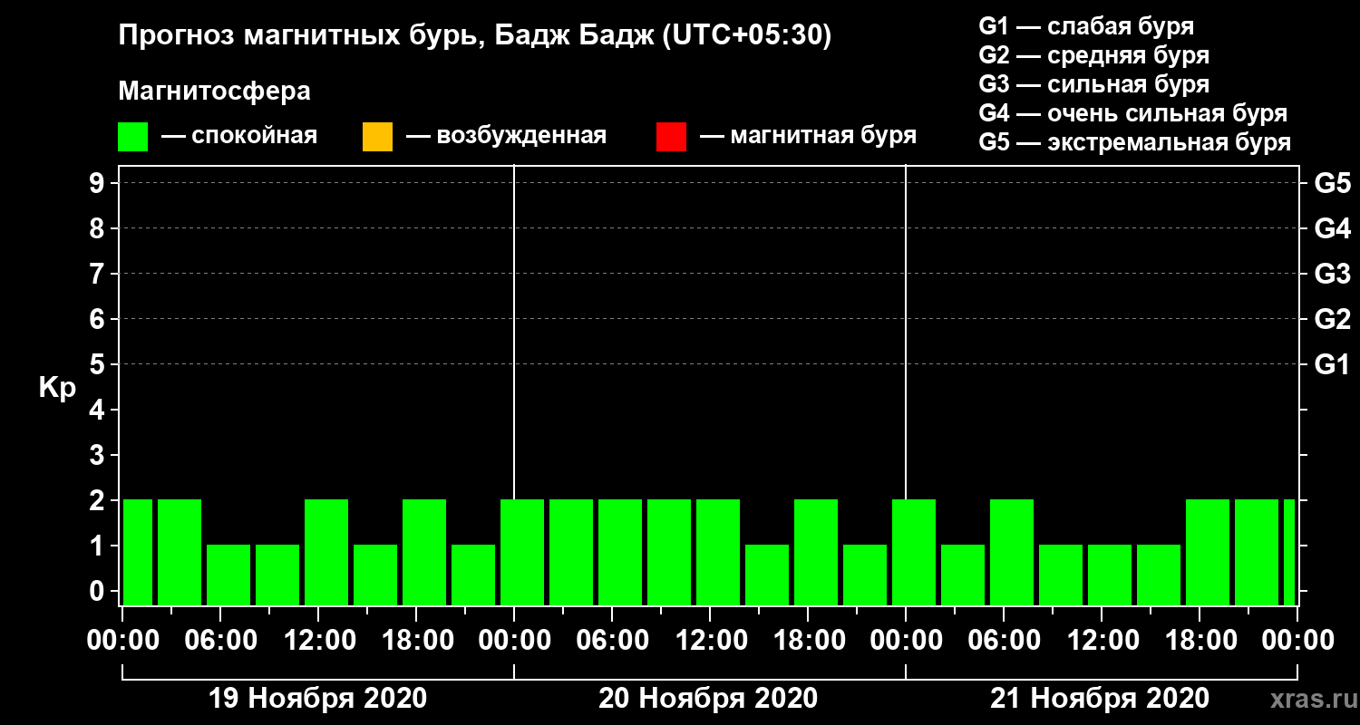Прогноз магнитных бурь в Бадж Бадже — 19 ноября 2020 года
