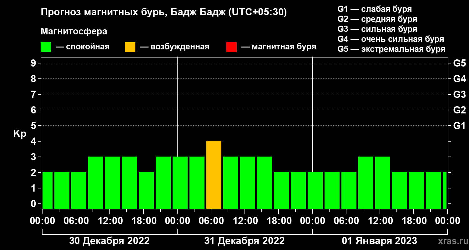 Прогноз магнитных бурь в Бадж Бадже — 30 декабря 2022 года