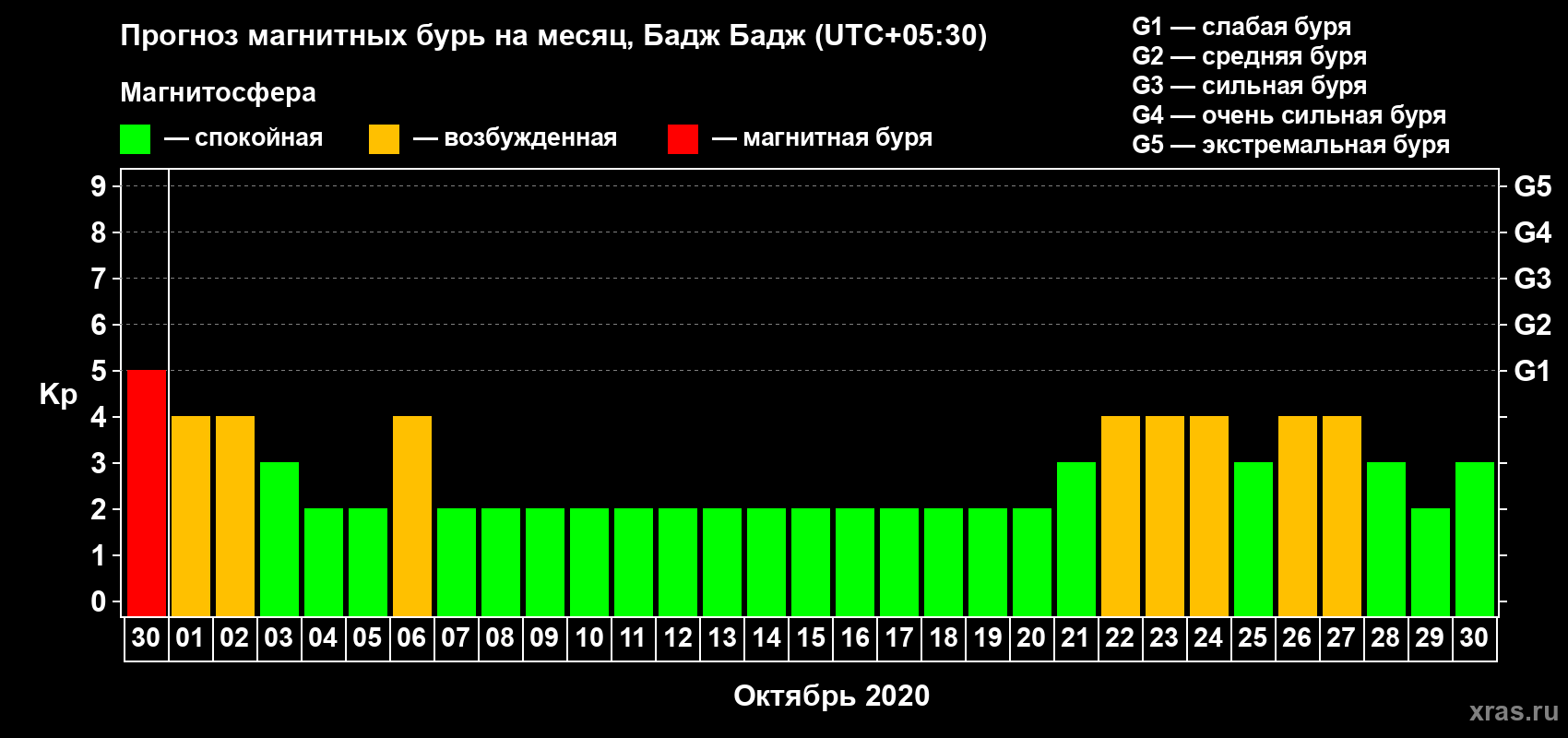 Прогноз магнитных бурь в Бадж Бадже — 30 сентября 2020 года