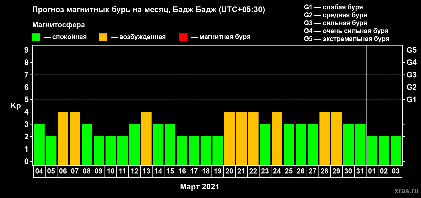 Прогноз магнитных бурь в Бадж Бадже — 4 марта 2021 года