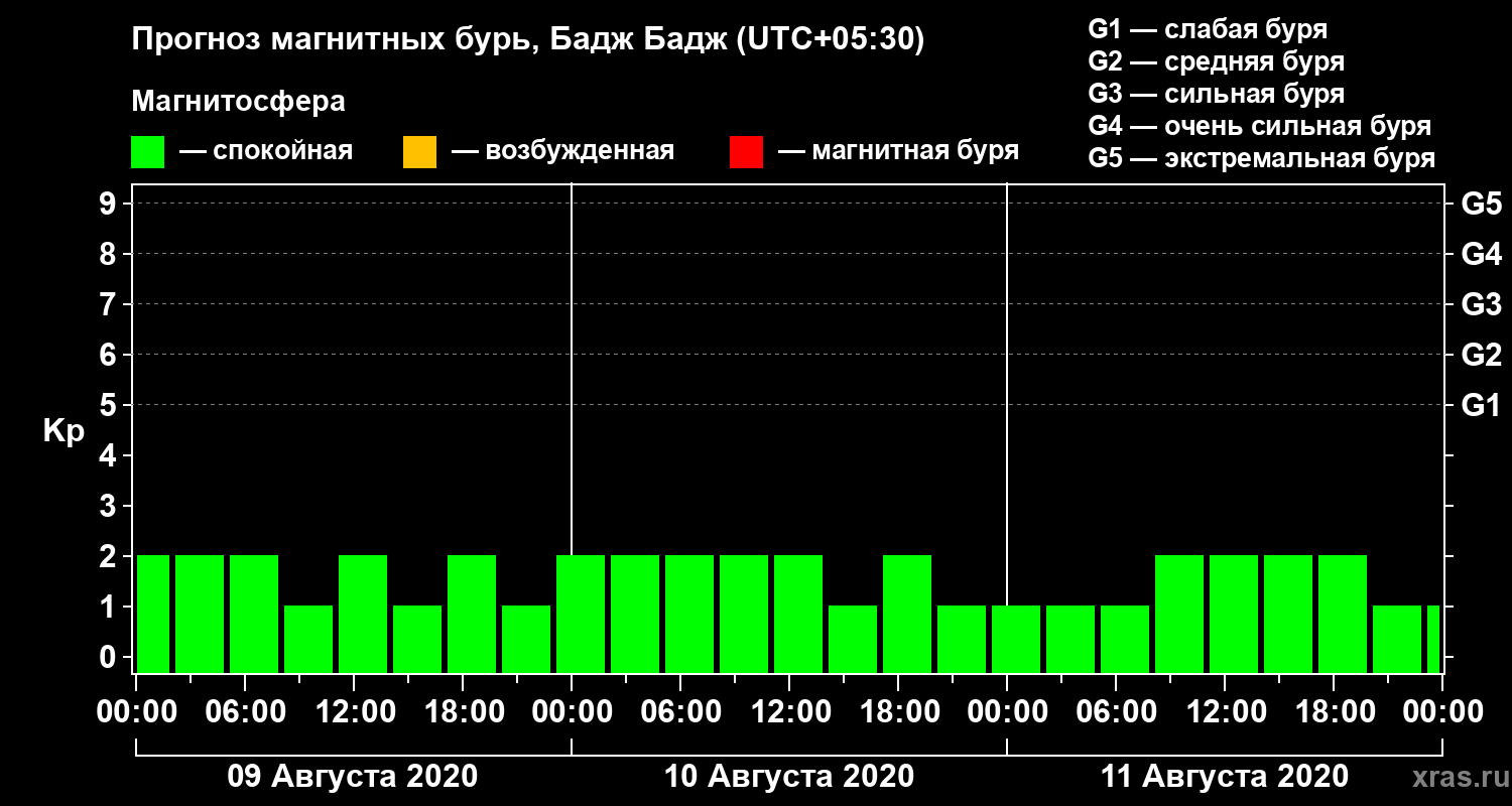 Прогноз магнитных бурь в Бадж Бадже — 9 августа 2020 года