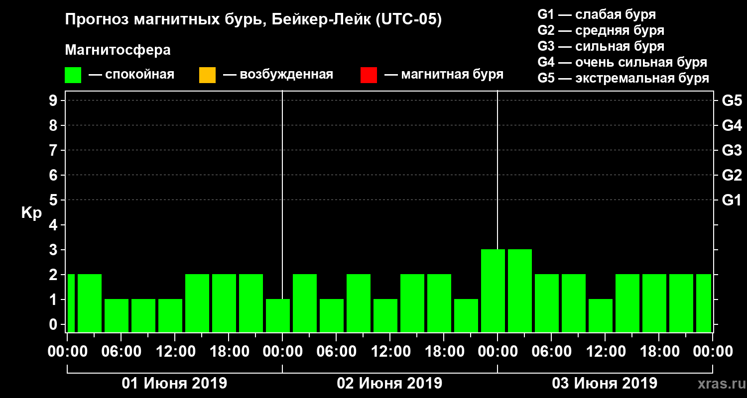 Прогноз магнитных бурь в Бейкер-Лейке — 1 июня 2019 года