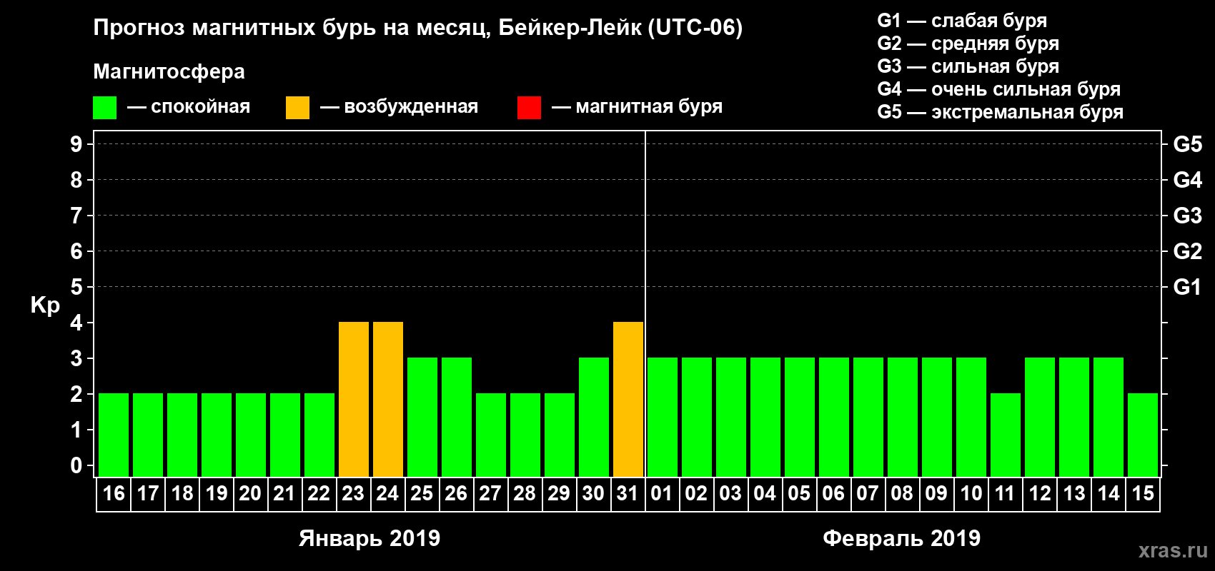 Прогноз магнитных бурь в Бейкер-Лейке — 16 января 2019 года