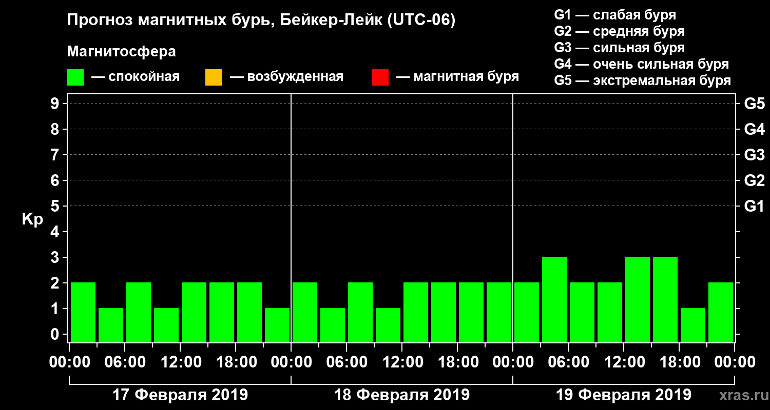Прогноз магнитных бурь в Бейкер-Лейке на 17 февраля 2019 года