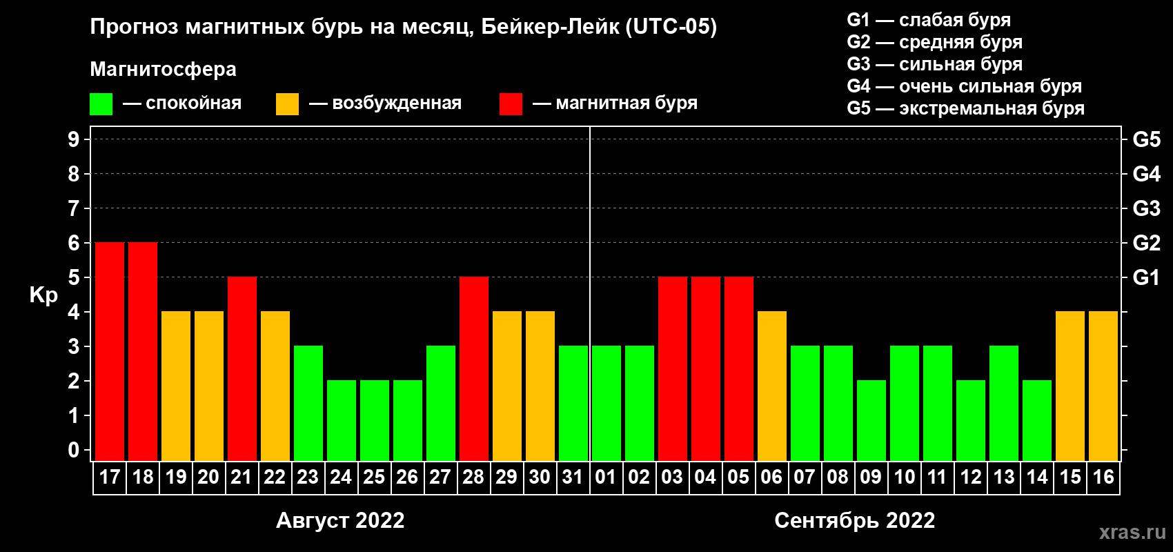 Прогноз магнитных бурь в Бейкер-Лейке — 17 августа 2022 года