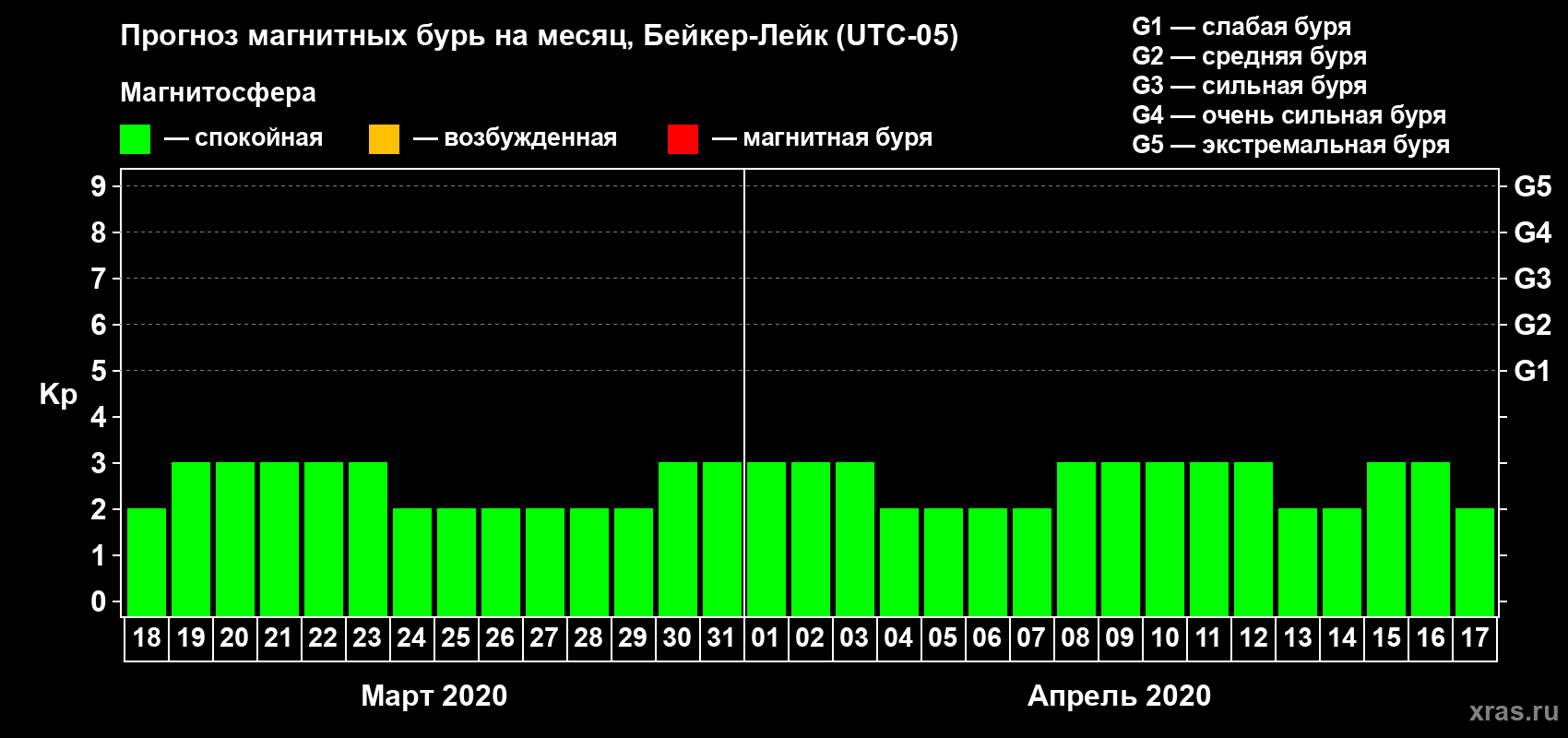 Прогноз магнитных бурь в Бейкер-Лейке — 18 марта 2020 года